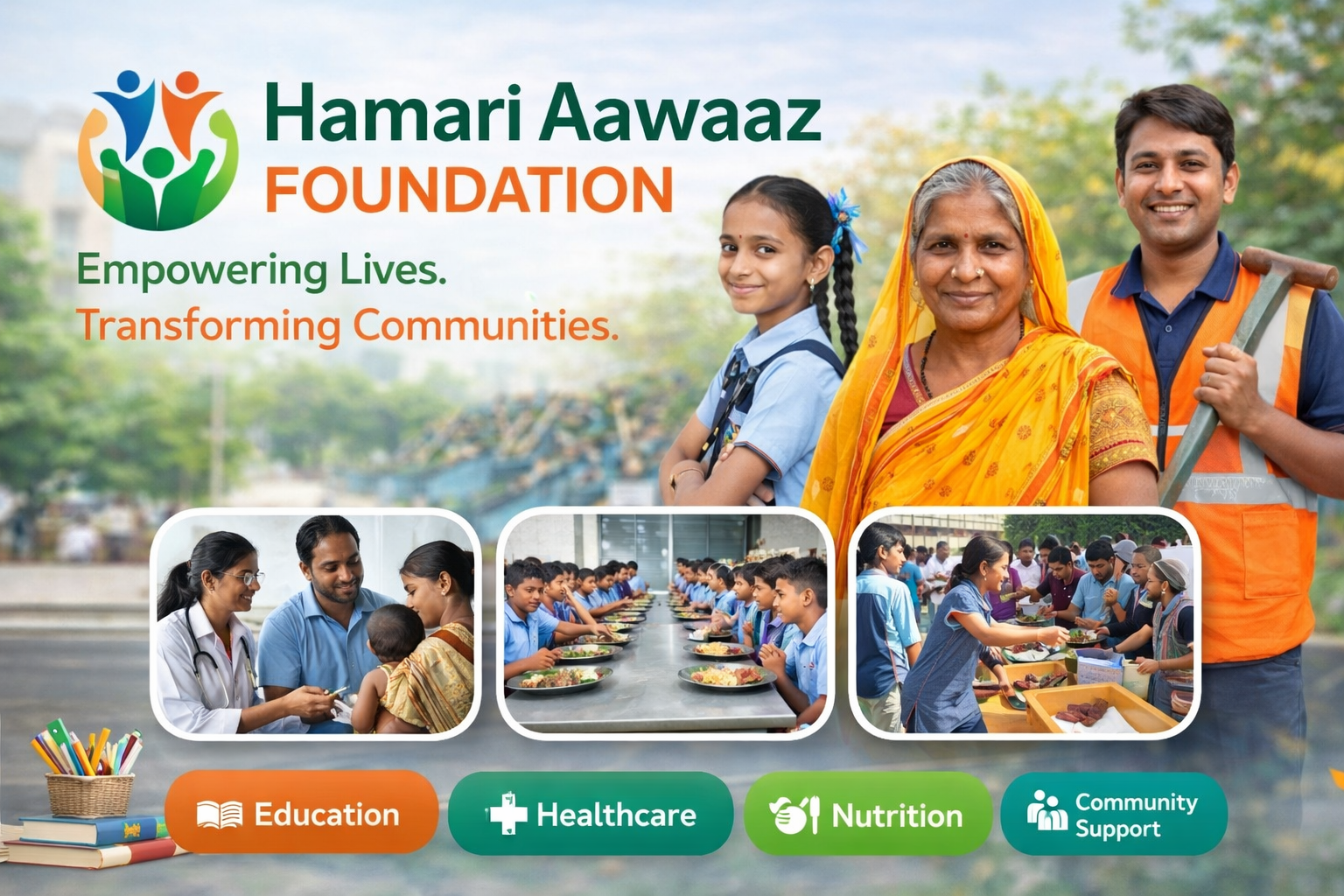 Established in 2016, Hamari Aawaaz Foundation works at the grassroots level to empower communities through education, healthcare, skill development, women empowerment, environmental sustainability, and awareness initiatives.
